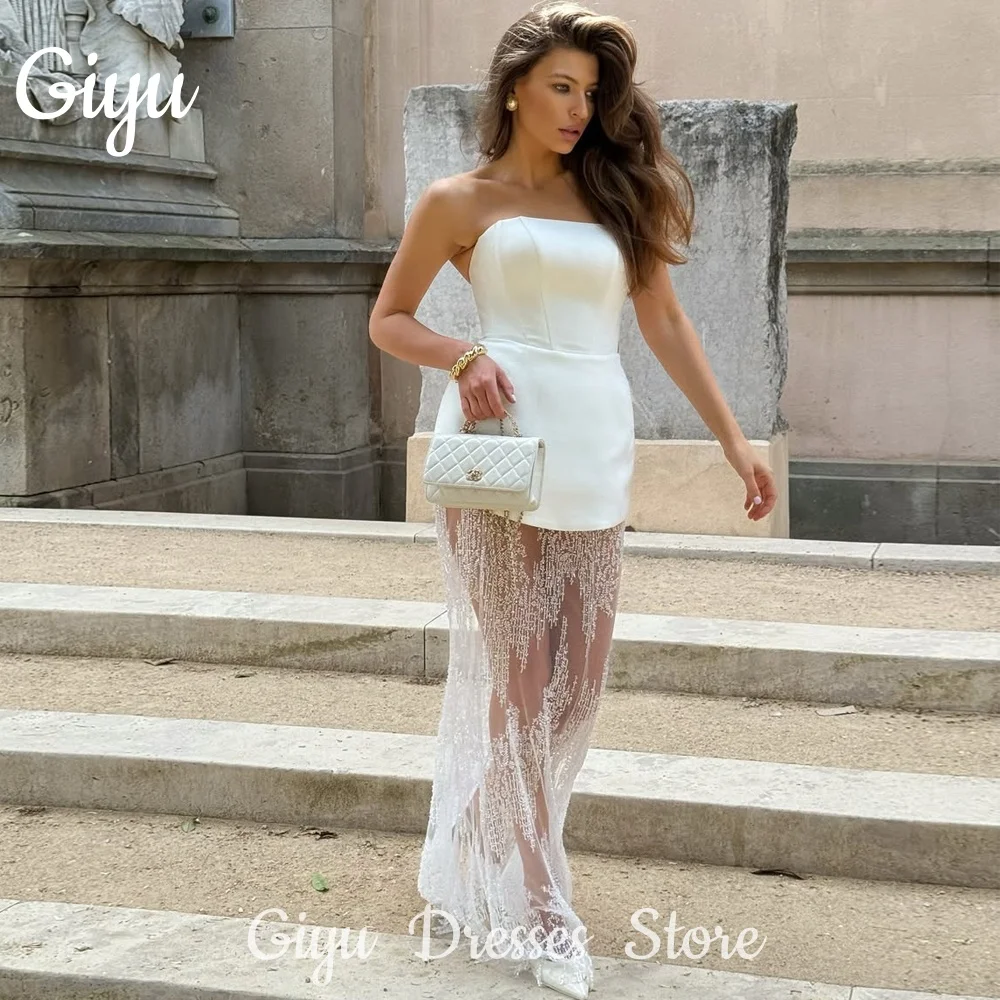 Giyu Modern Sleeveless Lace Wedding Dresses Strapless Modern Satin Short Bridal Gowns Vestido de noiva US Women 2025 Zip Back